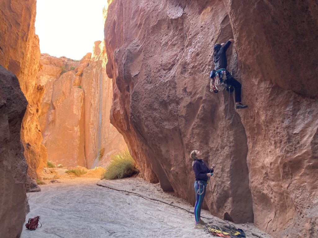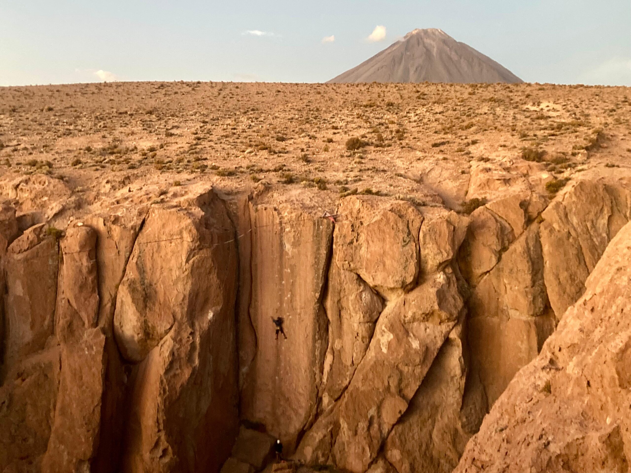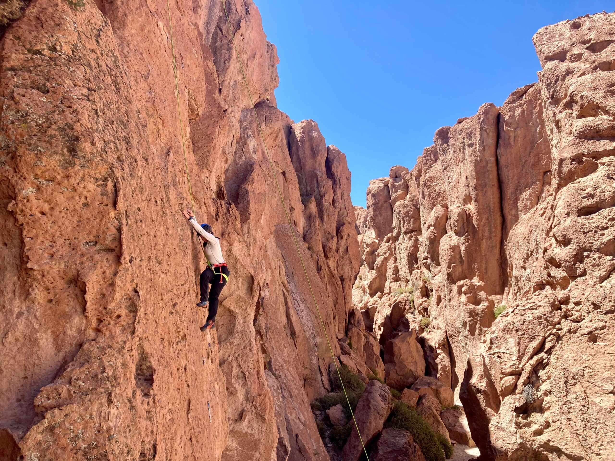 Escala en roca junto a Andes Summit, servicio adecuado a tu nivel y expectativas, no necesitas experiencia previa. Nos dirigiremos en dirección al paso jama por la carretera, luego de 30 minutos aproximadamente llegamos a nuestro estacionamiento con el volcán Licancabur y Juriques de frente, bajamos hacia la quebrada en el sector de Corral Blanco, luego de 10 minutos caminando llegaremos al sector de escalada Paso Jama, donde existen rutas de escalada equipadas para diferentes niveles, desde principiante (5.9) hasta avanzado (12c) de esta forma nos adecuamos a tu nivel, estaremos escalando diferentes rutas durante la mañana, haremos un descanso para almorzar y continuamos en la tarde escalando hasta quedar cansados, felices y satisfechos.