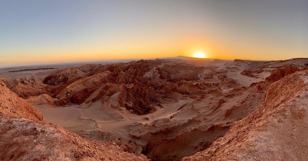 Muy cerca, el Valle de Marte, también conocido como Valle de la Muerte, ofrece un escenario igualmente impactante, con grandes dunas, quebradas rojizas y amplias vistas panorámicas de la cordillera y los volcanes andinos. Sus colores intensos refuerzan esa sensación de estar en un paisaje extraterrestre.